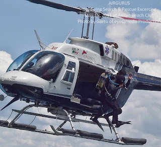 Coordination, professionalism and communication is the key for a precise, safe and exhilarating heli-dive / heli-jump of our new enthusiasts. From Airgurus' Captain Harry Lero (the Heli-Dive Master of the Skies) to the Airgurus Heli-Dive Activity Coordinator (moi, while documenting the entire thing), to our Heli-Dive Consultant (James Omac of James Omac Scuba Academy), to hand signals to two dive instructors, to 3 first aid responders on the speedboat, to our co-developer and Airgurus' Official Heli-Dive Photography Master (Vincent Garrucho), to his other shooters and to ground ambulance crew on standby, etc., communication is passed on via our hand held radios. There is absolutely no room now for a copy-cat in the Philippines nor for enthusiasts to think of chartering helicopters for the same activity from other companies or fly-by-night operators because with Airgurus Ltd. Co, it's all about professional logistics and safety.